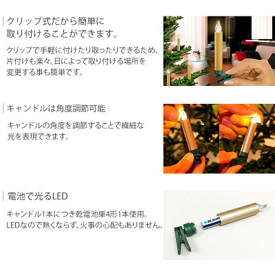 クリスマス飾り/リモコン式クリップキャンドルライトLumix 12本セット リモコン付き/ゴールド/カシミア/レッド/オーナメント/デコレーション/LED/梱包サイズ小